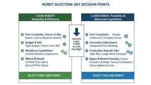 “The decision between 3-axis and 5-axis robots isn’t about which technology is superior—it’s about which solution best matches your specific manufacturing challenges and production goals.”